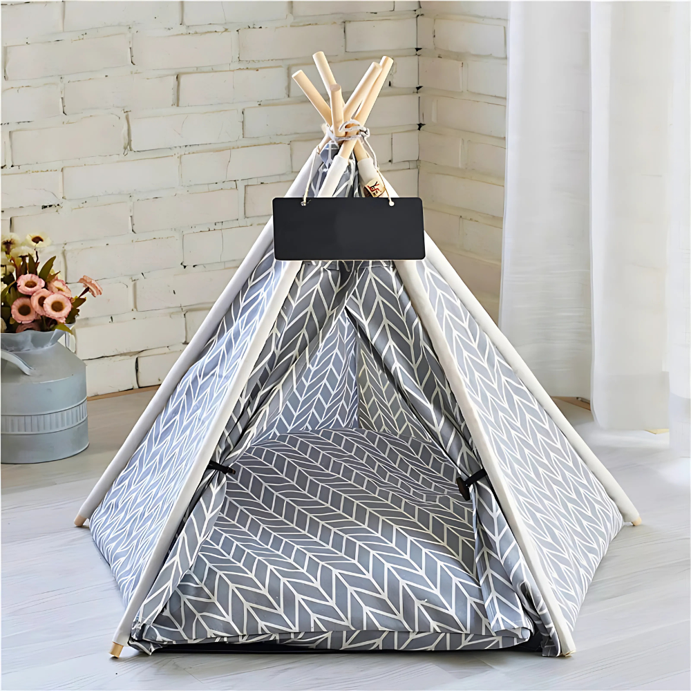 Faltbares Haustierzelt mit Holz & Canvas – Kuscheliger Rückzugsort für Zuhause & unterwegs