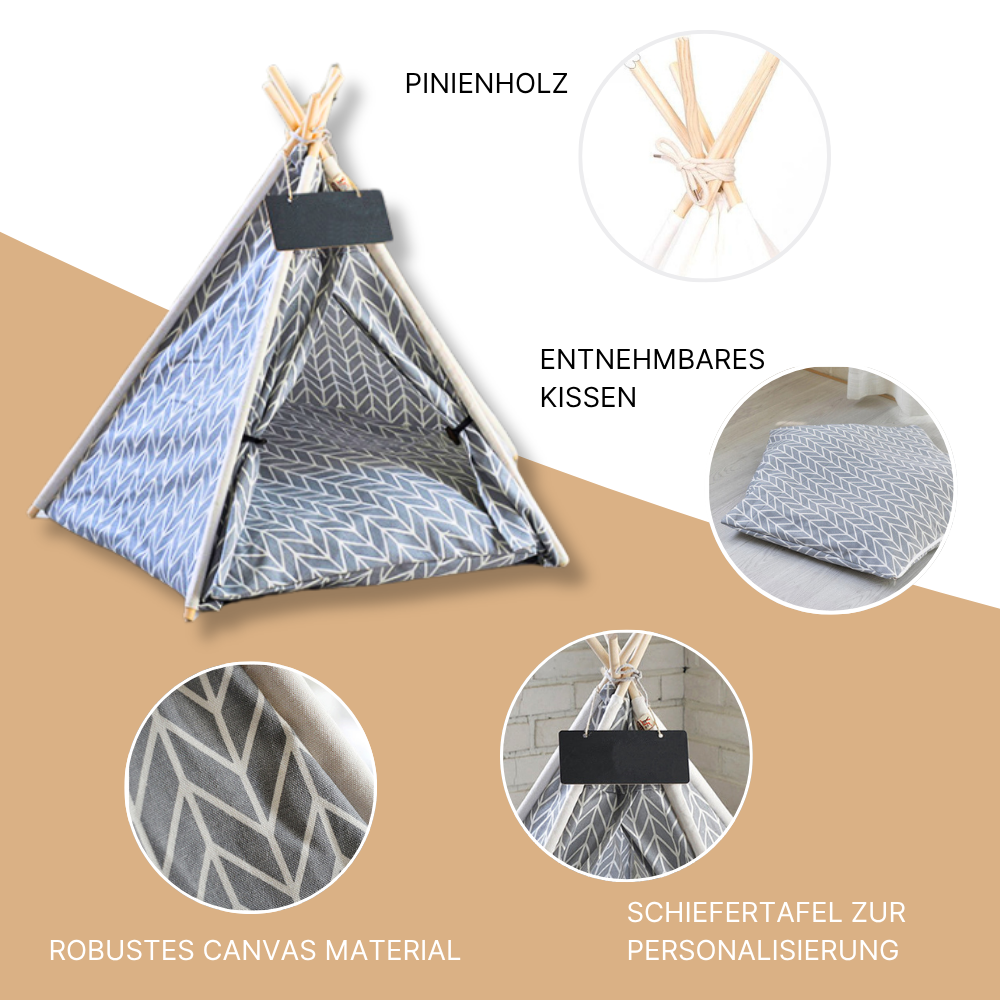 Dieses liebevoll gestaltete Tipi ist viel mehr als nur ein Haustierbett – es ist ein gemütliches Zuhause, ein Rückzugsort und ein echter Blickfang in deinen vier Wänden.