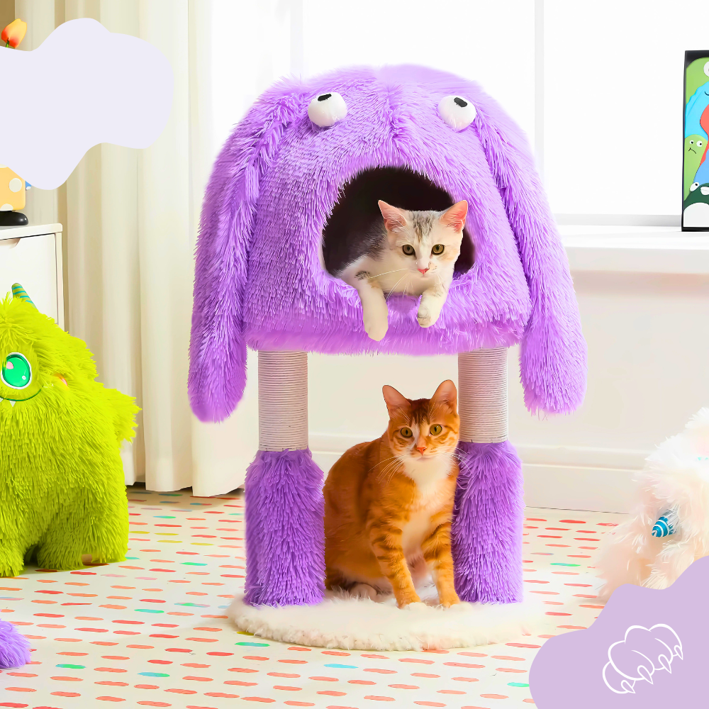 Der 2-in-1 Kratzbaum im verspielten Monster-Design ist nicht nur ein Blickfang, sondern ein wahres Wohlfühl-Paradies für deine Fellnase. Kratzen, Spielen, Verstecken und Entspannen – alles in einem!